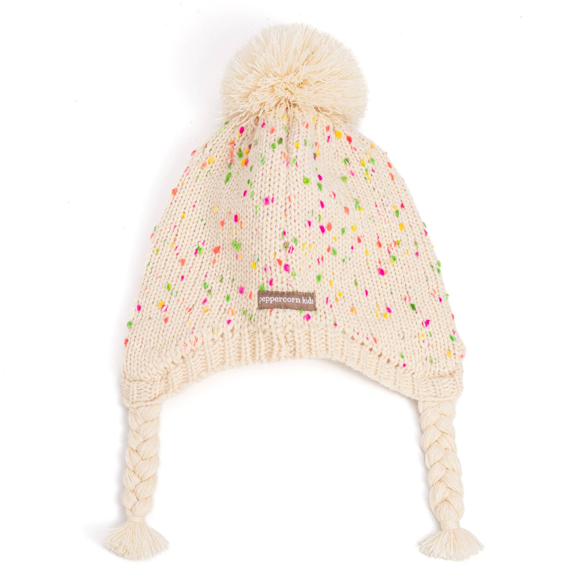 Speckled Knit Fleece Lined Winter Hat with Braids: M (2-4Y)